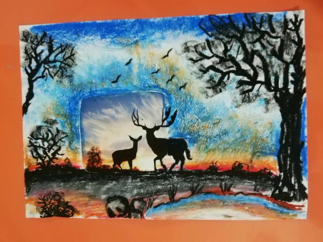 gorsel sanatlar dersi etkinlikleri pastel boya renk gecisleri ve siluet calismasi
